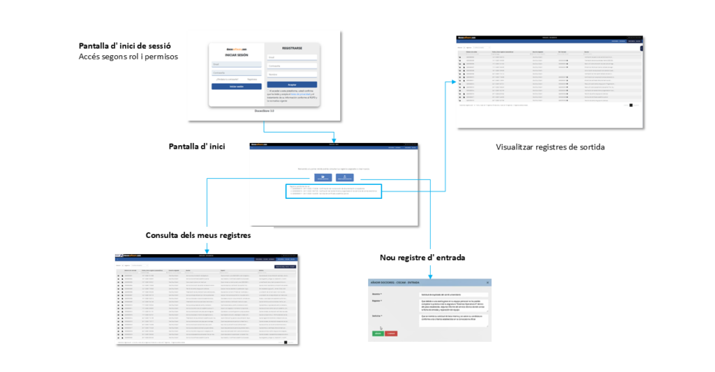 - Usuaris Externs: Poden registrar-se al sistema per consultar o crear els seus propis registres d’entrada.