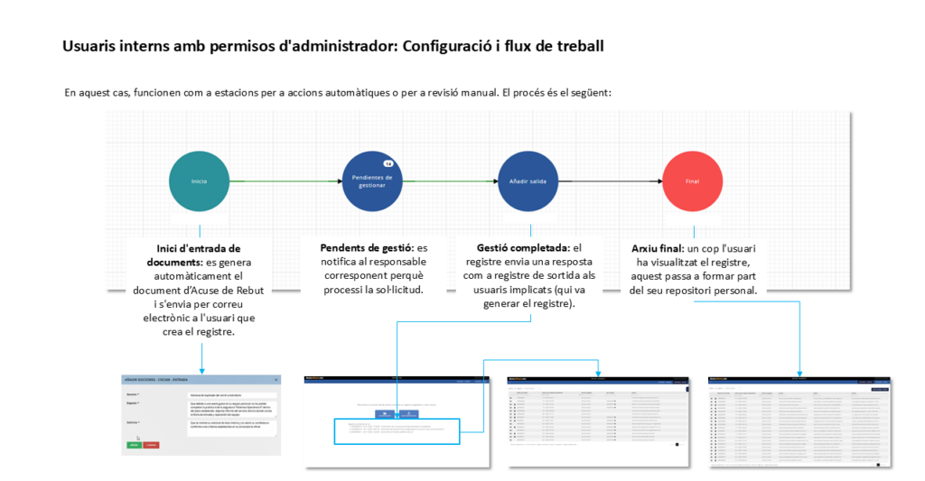 - L’usuari intern completa la gestió i genera un registre de sortida dirigit a l’usuari extern.